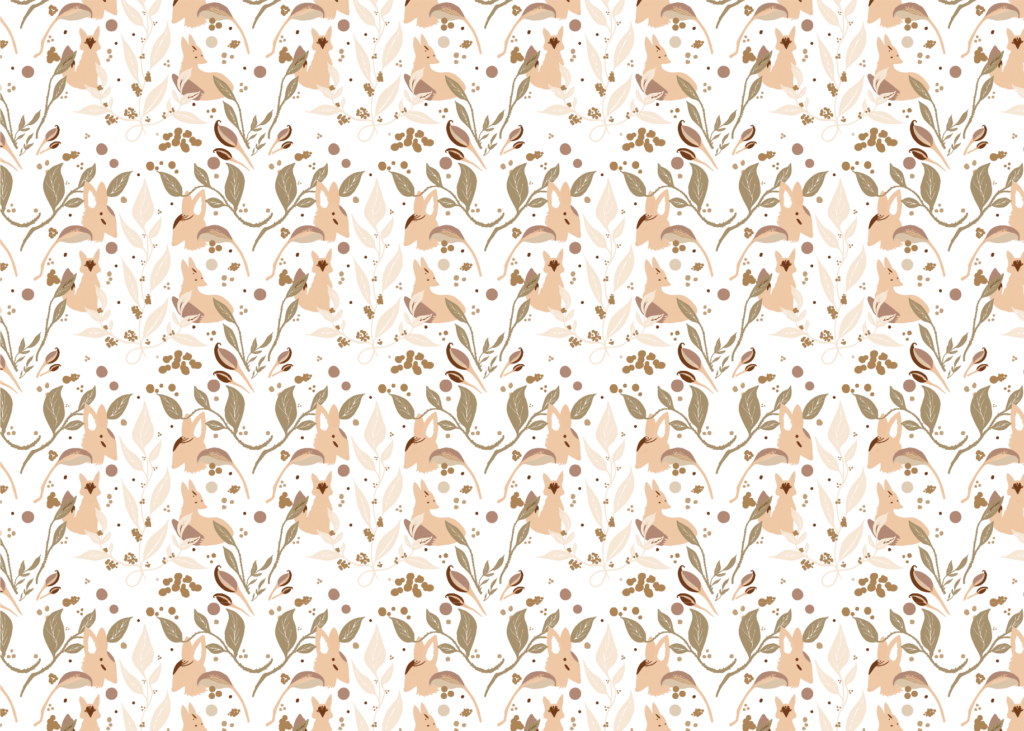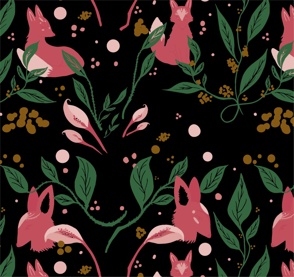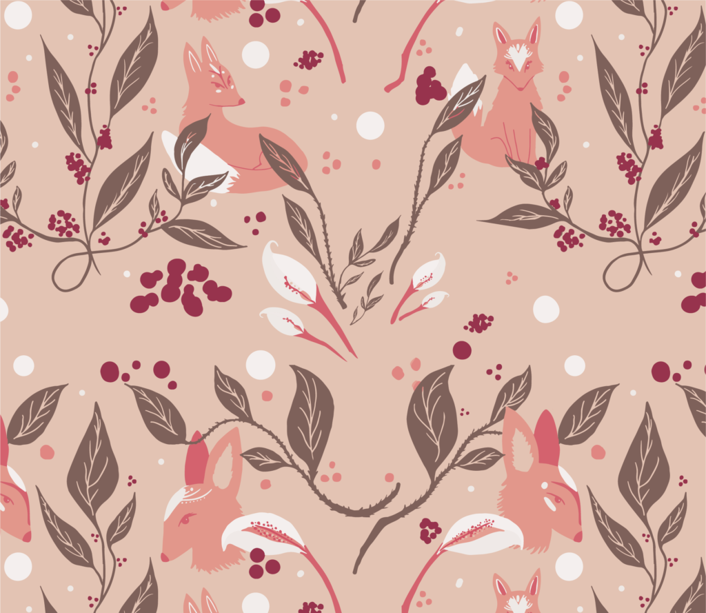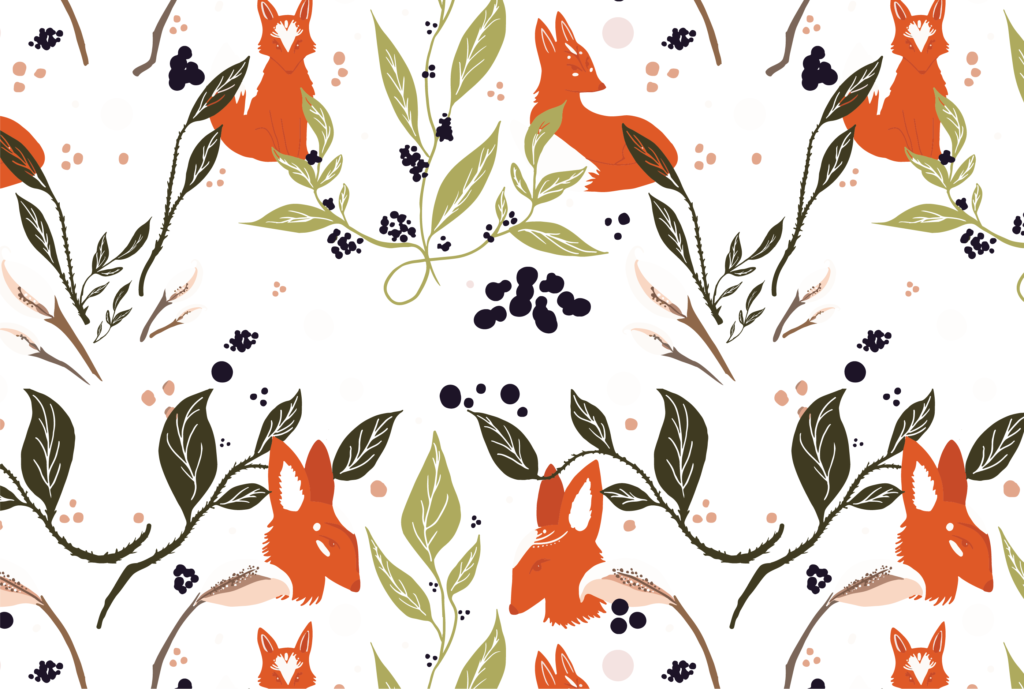 seamless pattern of foxes and floral elements